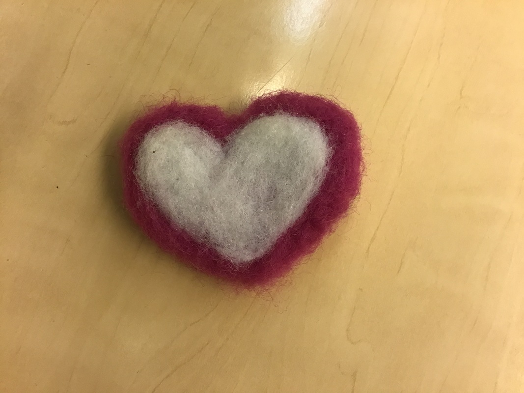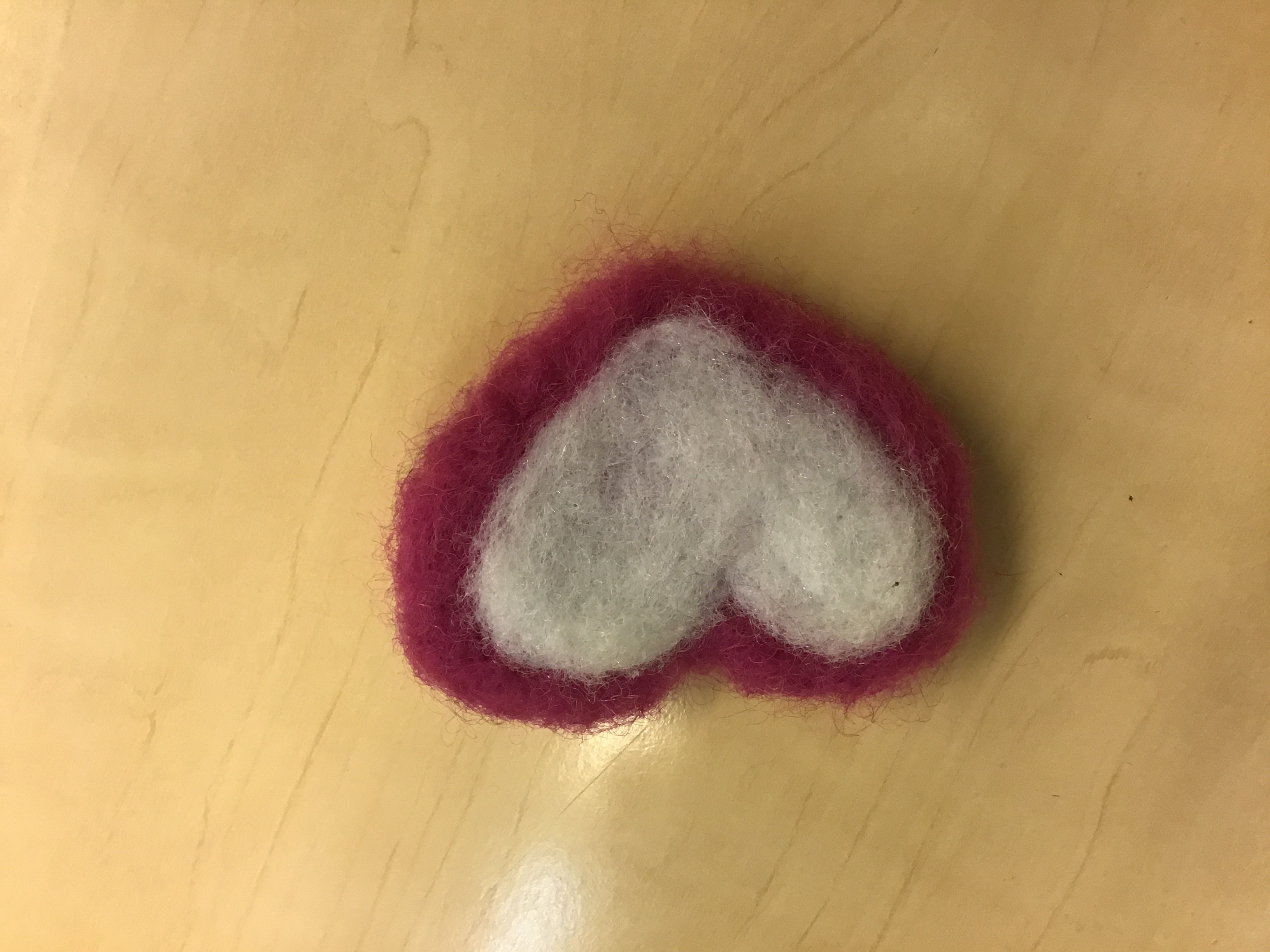 Leikkasin vaahtomuovista pään muodon eli ympyrän ja sitten aloin huovuttamaan pallon ympärille päätä.