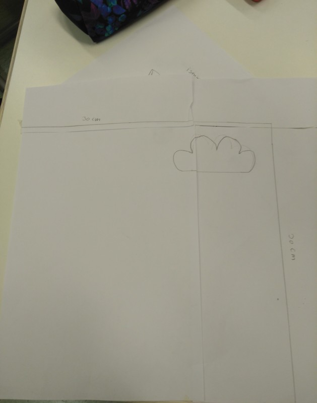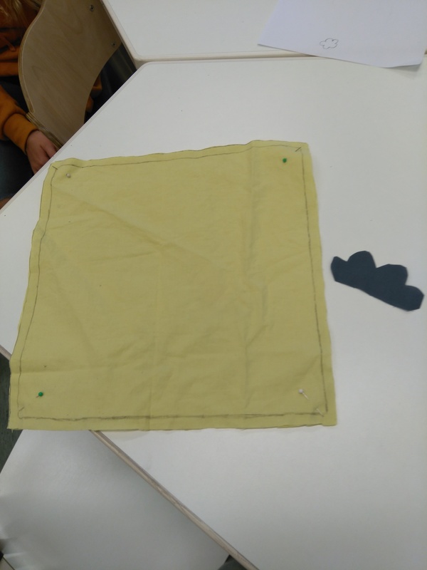 Olin hävittänyt kankaani, joten otin uuden kankaan tuon keltaisen. Kangas piti laittaa kaksinkerroin. Kaavapaperi piti kiinnittää ensin nuppineulojen avulla kankaaseen ja sitten vasta piirtää. Leikkasin kaavapaperin avulla kankaasta palan ja piirsin siihen myös sentin saumavarat ensin. Tein pilven samalla tavalla. Se pilvi tulee yläreunaan. Pelattiin kahden tulen välissä peliä. A-ryhmä voitti eli se missä mä olin. A-ryhmässä ei kaikki edes pelannu, mutta en tiiä B-ryhmästä. Me saatiin B-ryhmästä yksi oppilas.