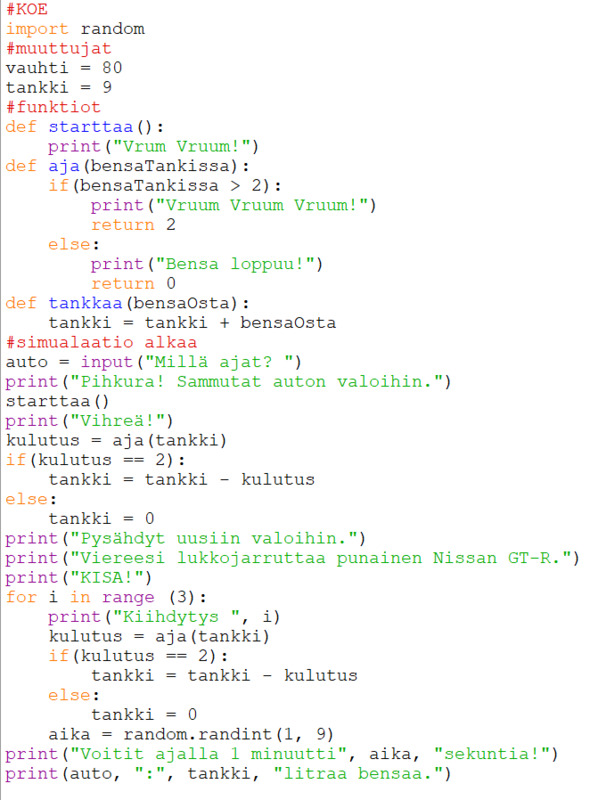 1. Mitkä kaikki ovat koodista löytyviä muuttujia? (oikea vastaus = 1 piste, väärä vastaus = -1 piste)
