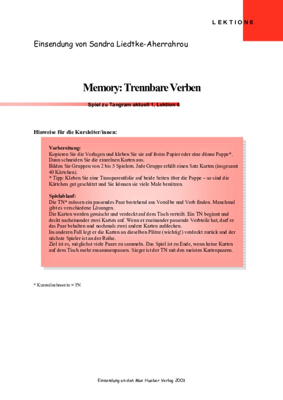 Memory trennbare Verben