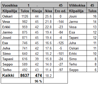 Tilanne kisojen jälkeen
