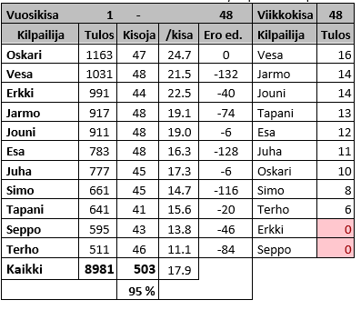 Tilanne kisojen jälkeen