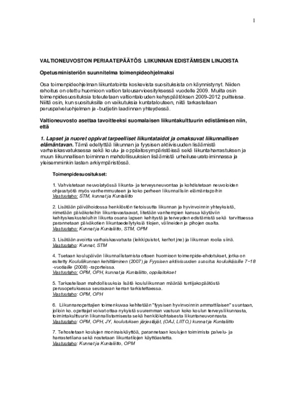 Valtioneuvoston periaatepäätös liikunnan edistämisen linjoista