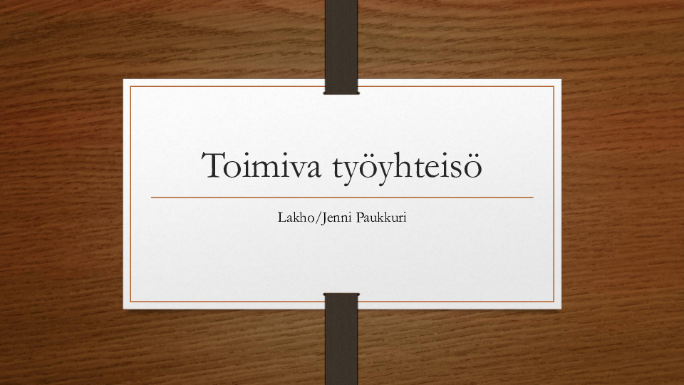 Millainen vaikutus työhön on hyväksyvällä ja kannustavalla työyhteisöllä? (n. 20 min)