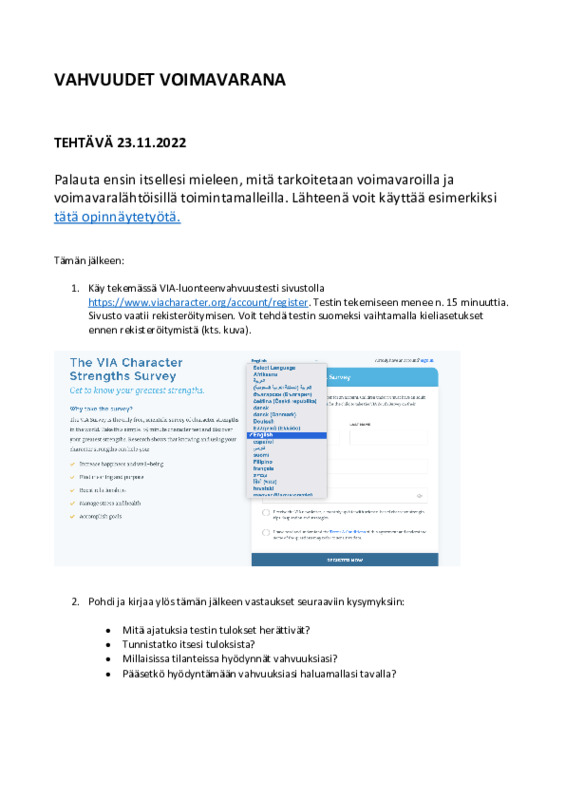 Palauta tänne vahvuudet voimavarana-tehtävä viimeistään ma 28.11.