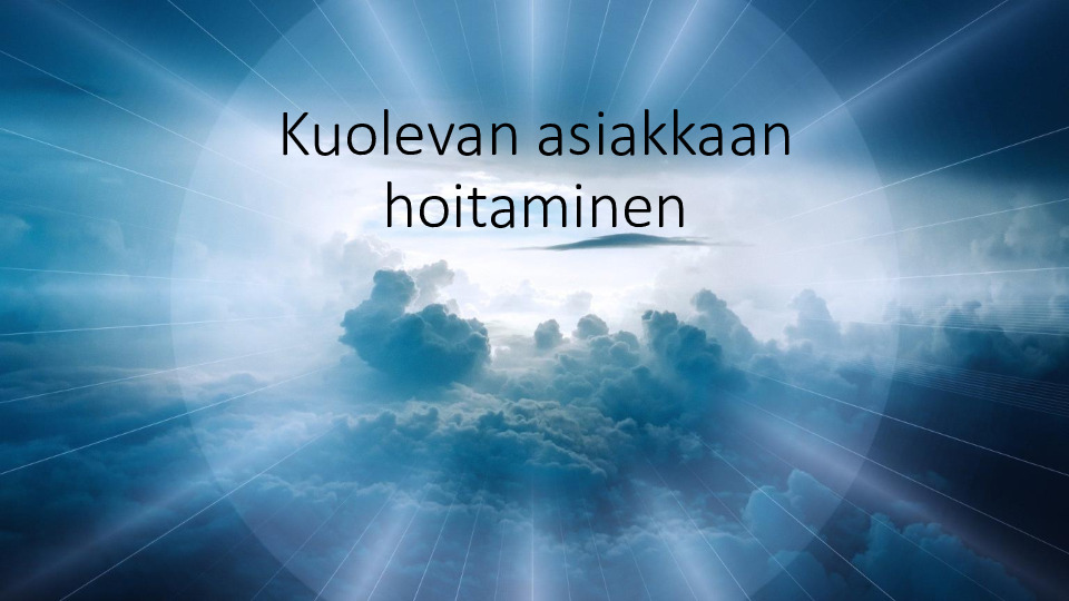 Hyvä saattohoito Jaa Hyvä elämä loppuun asti https://youtu.be/rAU_80S5HwE Kuolevan asiakkaan hoitaminen Kuolevan asiakkaan hoitaminen.pdf 1.5 Mt Videoita Elämä kuoleman jälkeen Katja Kotikangas Pitkät jäähyväiset