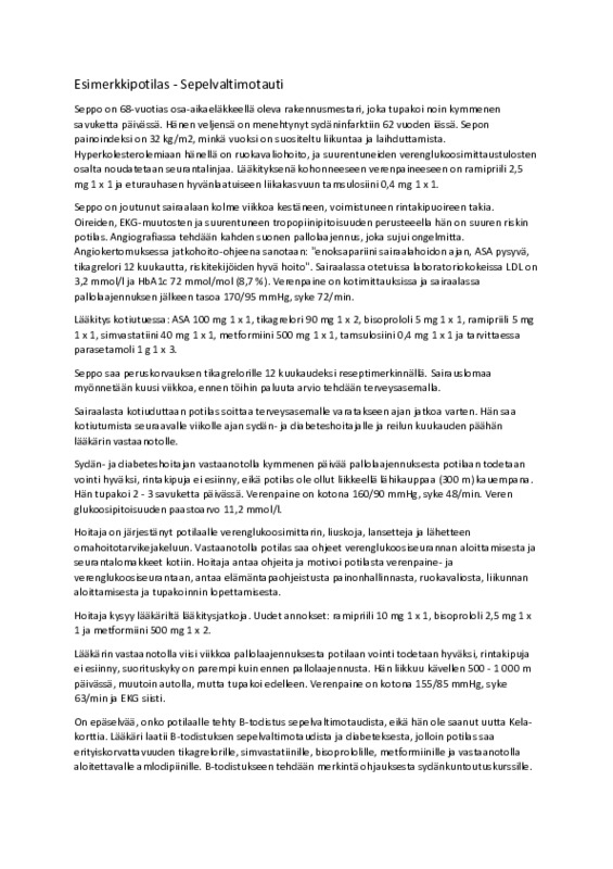 4.1 Sydän- ja verisuonipotilaan lääkehoito Jaa Sydän- ja verisuonisairauksien lääkehoito Sydän- ja verisuonisairauksien lääkehoito.pdf 5.2 Mt Sepelvaltimotaudin esimerkkitapaus lääkehoitoineen Esimerkkipotilas - sepelvaltimotauti.pdf 73.4 kt