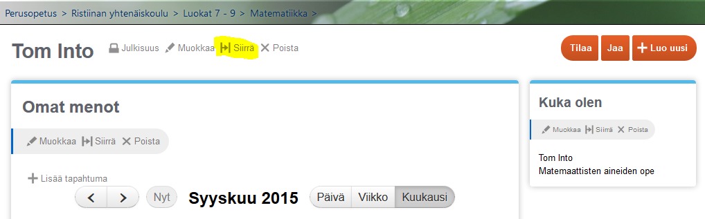 - Mene sivulle, jonne aiot siirtää materiaalin. Kopioi sivun osoite osoiteriviltä.