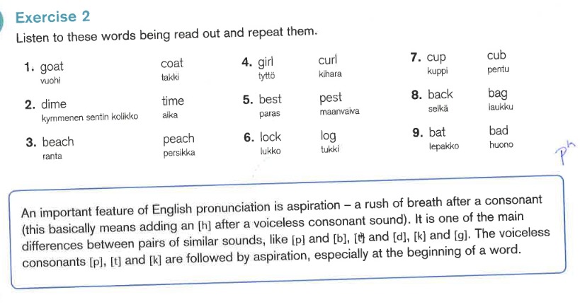 * difficult sounds for Finns: ch/sh, ch/dj, p/b, t/d, k/g