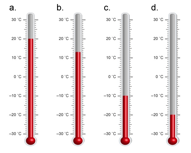 Piirrä perinteinen lämpömittari ja merkitse seuraavat lämpötilat.
