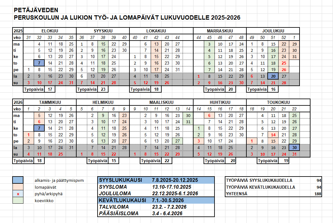 Jakaminen Sulje Lukuvuoden 2025-2026 työ- ja lomapäivät Pysyvä osoite https://peda.net/id/c8fe2fecd0d Pysyvä tiedoston latausosoite https://peda.net/id/c8fe2fecd0d:file/download/19473a76af1019b9648178497e00fa98095b742b/Ty%C3%B6-%20ja%20lomap%C3%A4iv%C3%A4t%202025-2026.png Jakaminen muihin palveluihin Share this page to Facebook QR-koodi