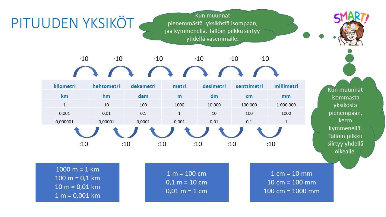 Pituuden yksiköt Jaa Mitäs pituuden yksiköt olikaan? Harjoitellaan Muista selata lomaketta alaspäin, jotta näet kaikki tehtävät. Paina lopuksi lähetä painiketta ja sitten näytä vastaukset painiketta, niin näet omat tuloksesi.