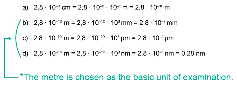 Jakaminen Sulje The metre is chosen as the basic unit of examination. Note that the coefficients of the scientific expressions transform the numerical values into metres (mm = 10-3 m) and that we now want to complete the conversions in the other direction. Pysyvä osoite https://peda.net/id/22cad4a92cf Pysyvä tiedoston latausosoite https://peda.net/id/22cad4a92cf:file/download/deb94efda28b8c156e72b643bdc40711d817b6eb/7_example3.png Jakaminen muihin palveluihin Share this page to Facebook QR-koodi