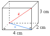 - Särmiön lävistäjä d: [[$ d^2=x^2+c^2 $]]=[[$ x^2=a^2+b^2+c^2 $]]