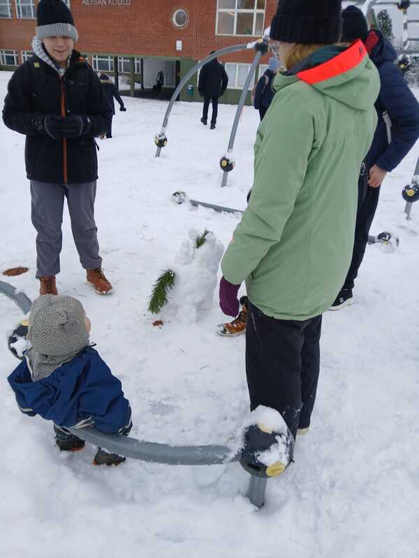 Lumipeite ja suojasää houkuttelevat tekemään lumipalloja ja -ukkoja. Perjantaina 21.11.25 nuorisotyö ja tukarit järjestivät koululla lumiveistoskilpailun, jonka voittajaksi valittiin lohikäärme 🐉 Samana päivänä oli myös Lapsi mukaan töihin -päivä, joten koululla oli myös nuorempaa henkilöstöä ☺️