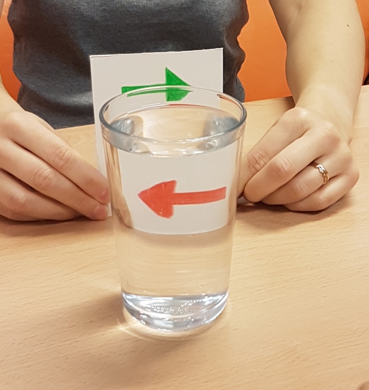Lisää hauskoja valon taittumiskokeita löytyi Tiedonjyvä-ohjelmasarjan jaksosta, ja näitä mekin päätimme kokeilla. Kokeet tuntuivat melkein taikatempuilta, kun nuolet muuttivat vesilasin takana suuntaansa ja kolikko katosi jäljettömiin. Mutta kysehän onkin "vain" superjännästä tieteestä! 😎