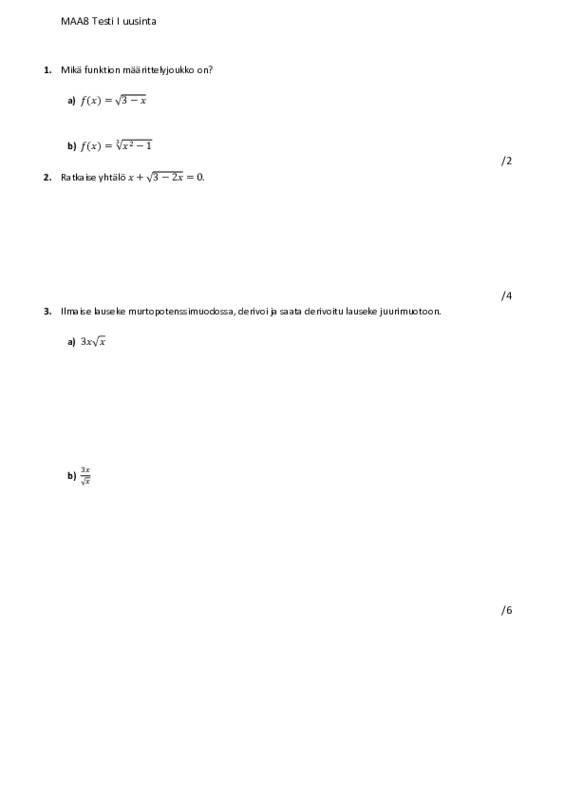 Välitestin I uusinta Jaa Sulje Tekijä: Lauri Mäkelä Tämän tiedoston tekstivastine: (tyhjä tekstivastine) MAA8 Testi I uusinta.pdf 276.3 kt
