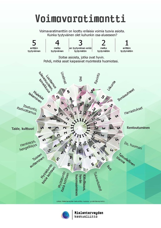 Voimavaratimanttiin on koottu erilaisia voimia tuovia asioita.