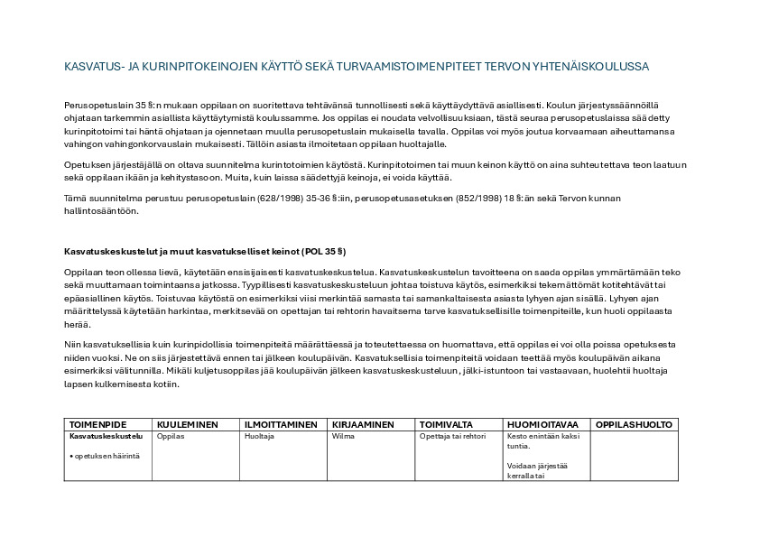 Kurinpitokeinojen suunnitelma