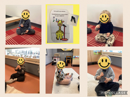 Den här veckan ordande förskolepersonalen en sagostund i salen. Efter att barnen lyssnat på sagan på ett tryggt avstånd kom barnen fram och studerade rekvisitan.