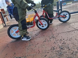 Vi har fått låna cyklar till Cygnaeus daghem och förskola. Barnen cyklar så ivrigt med såväl trampcyklar som med balanscyklar under utevistelserna. Cykling ger många fördelar för barn, inklusive förbättrad kondition, balans, motorik och koordinationsförmåga. Även koncentrationsförmågan främjas, vilket vi får nytta av när vi sedan går in och fortsätter vår förskoledag med undervisning och uppgifter.