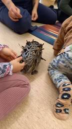 Denna höst kommer vi att ha "skogen" som tema på Lilla björnen! Det första djuret som fick flytta in i vår skog var igelkotten. Vi har pysslat igelkottar och i samlingen sjunger vi ramsan "igelkotten rund och god". Barnen har lärt sig att känna igen igelkotten och är mycket förtjusta i ramsan! Nästa djur på tur att flytta in i skogen är snigeln :)