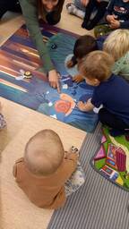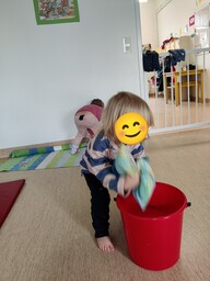 Denna vecka färglägger vi äpplen! Vi sjunger och ramsar om hösten och funderar över löven som ändrar färg och faller ner från träden. Även en utejumppa har vi hunnit med, där barnen har fått öva att hoppa, balansera, dansa och kasta ärtpåsar i en hink! :)