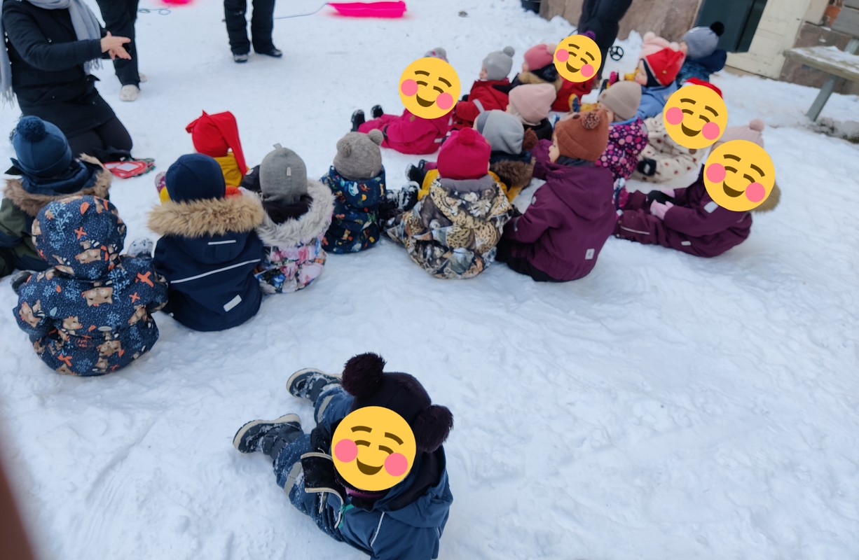 Idag var det äntligen sånt väder att vi kunde gå ut och springa, hoppa och skotta snö! Det blev en lång utevistelse och när vi kom in fick barnen höra sagan och bordsteatern "den lilla gumman", en riktigt mysig torsdag 😊