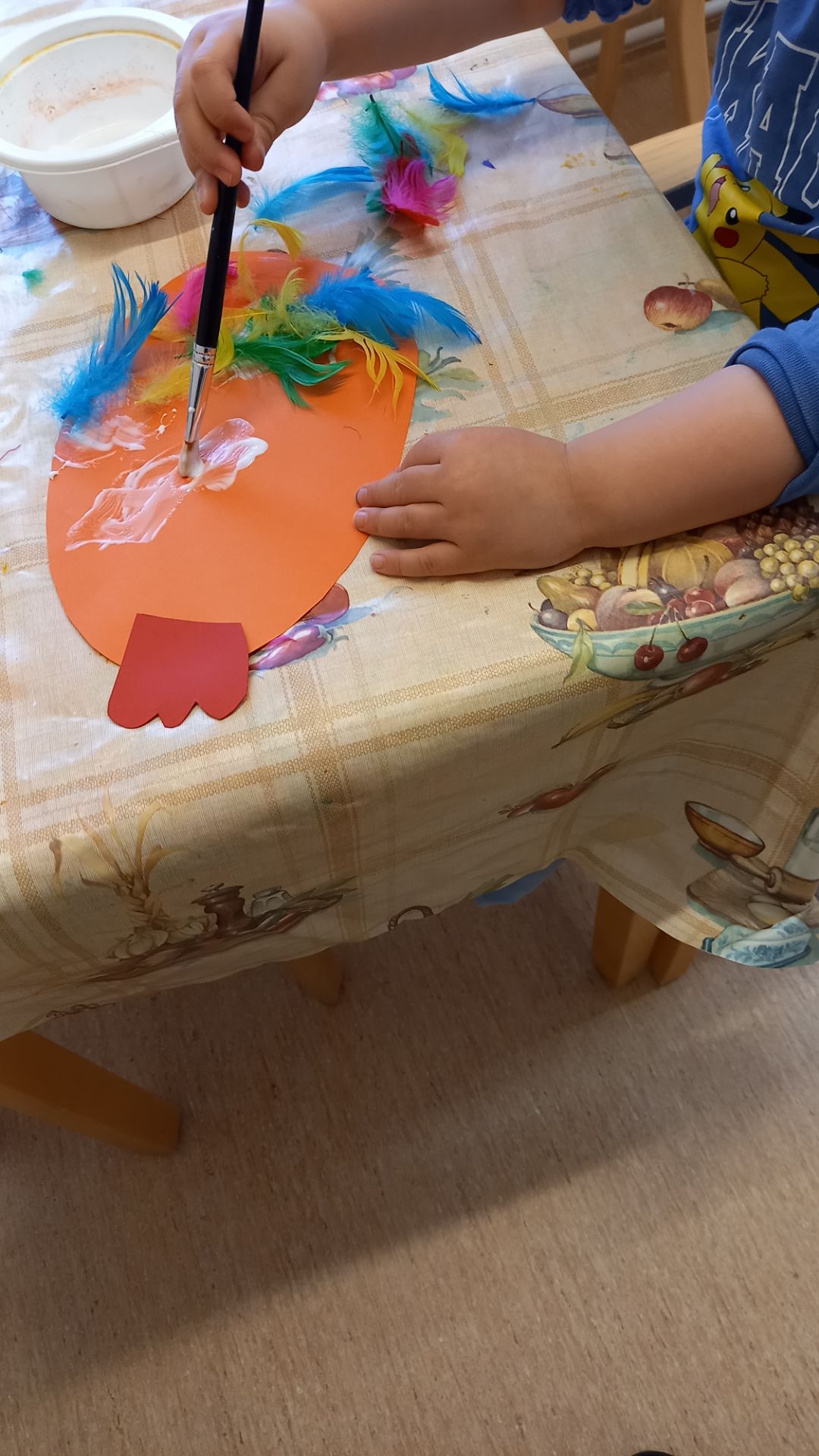 Vi limmar fjädrar på våra påsk kycklingar.Även kallade påskpingviner av barnen 😂❤️.