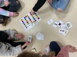 Idag har vi jobbat men veckans bokstav pÄ olika sÀtt. Vi spelade memoryspel med de bokstÀverna som vi redan hunnit bekanta oss med. Vi programmerade beeboten att gÄ till nÄgon bild som började pÄ en viss bokstav som vi tog ur en pÄse och sÄ fick vi mata mumsarfigurerna med bilder beroende pÄ var i ordet ljudet g hördes. FörstÄs gjorde vi ocksÄ en pappersuppgift om g.