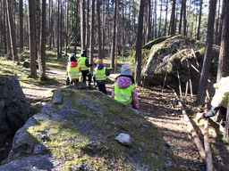 Idag hade vi rörelsestationer. Vi övade oss pĂ„ att hantera en boll pĂ„ olika sĂ€tt, kasta/fĂ„nga, dribbla mellan koner, passa en innebandyboll med klubba. Vi fick upp pulsen och vĂ€rmen genom att hoppa hopprep, hoppa över hinder osv. Barnen sĂ„g ut att trivas, de samarbetade sĂ„ fint. EfterĂ„t blev det lek i Ăventyrsparken.