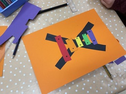 Vi spelade trumma och claves. Vi övade oss pÄ rytm, takt och tonhöjd.