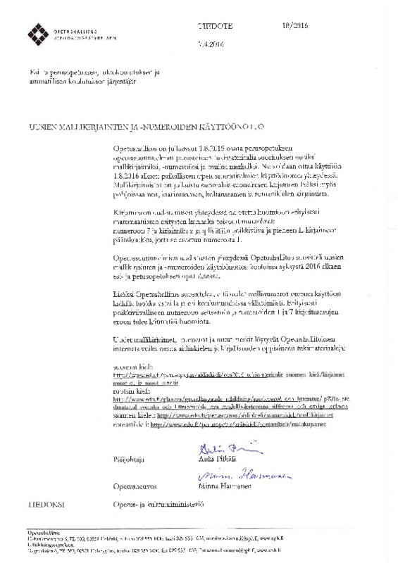 OPH:n tiedote - Mallikirjainten ja -numeroiden käyttöönotto
