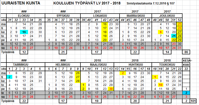 Jakaminen Sulje Uuraisten koulujen työ-ja loma-ajat 2017–2018 Pysyvä osoite https://peda.net/id/6d1c3f1e933 Pysyvä tiedoston latausosoite https://peda.net/id/6d1c3f1e933:file/download/78b095a61b5ab84a0a6145f1a312e2aae69a1d31/Ty%C3%B6ajat.bmp Jakaminen muihin palveluihin Share this page to Facebook QR-koodi