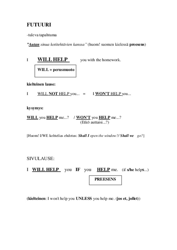 KIELIOPPI: Futuuri, Konditionaali, Sanajärjestys, Muodollinen subjekti, Persoonapronominit, Passiivi