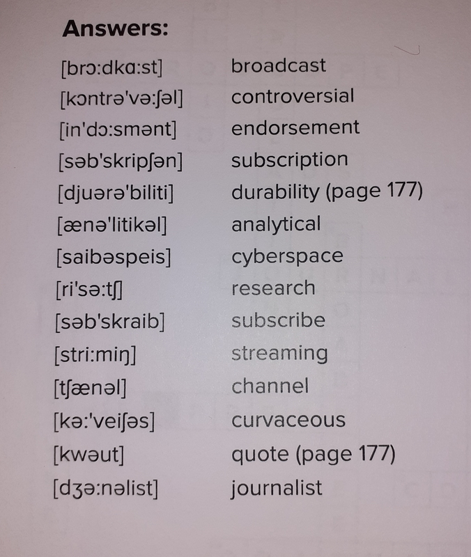 Then we did some revision on the vocabulary of chapter 17. First we practised pronunciation and then we did a "Talking crossword" exercise.