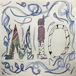 Monogrammi Jaa Monogrammi Katselutila Omasta nimestä värikäs, dekoratiivinen graafinen piirustus. Sekatekniikka: