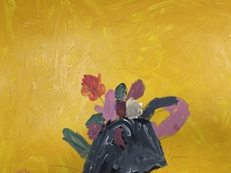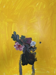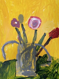 Maalaus luokassa olleista daalioista akrylimaalaeilla.