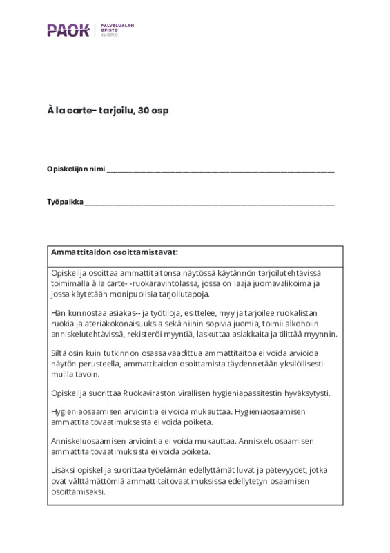 À la carte- tarjoilu, 30 osp.pdf Jaa Sulje Tämän tiedoston tekstivastine: (tyhjä tekstivastine) À la carte- tarjoilu, 30 osp.pdf 193.3 kt