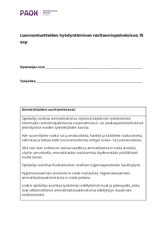 Luonnontuotteiden hyödyntäminen ravitsemispalveluissa, 15 osp.pdf Jaa Sulje Tämän tiedoston tekstivastine: (tyhjä tekstivastine) Luonnontuotteiden hyödyntäminen ravitsemispalveluissa, 15 osp.pdf 190.7 kt