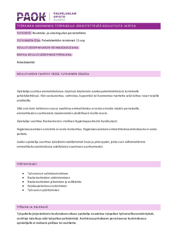 Työpaikan hakeminen Palvelukeittiön toiminnot.pdf Jaa Sulje Tämän tiedoston tekstivastine: (tyhjä tekstivastine) Työpaikan hakeminen Palvelukeittiön toiminnot.pdf 523.3 kt